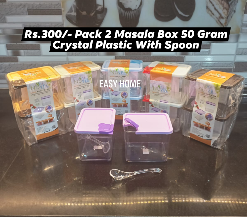 1 Pack Crystal Plastic Masala Box 2 Pcs Set With 1 Spoon