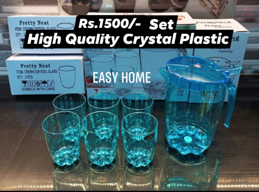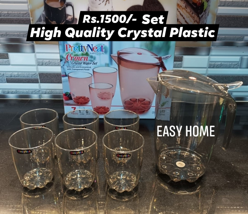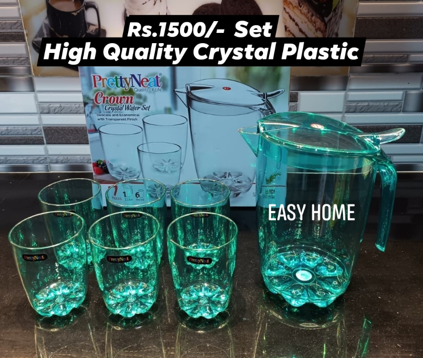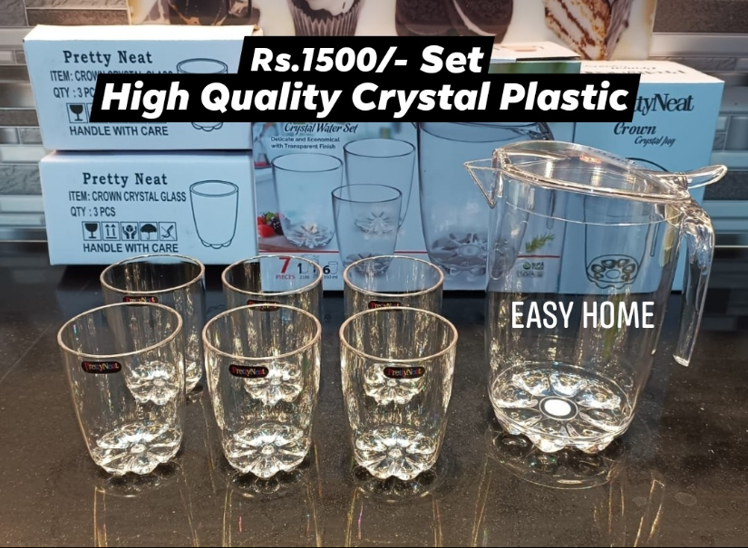 Upgrade your dining experience with our Crystal Plastic 6 Pcs & 1 Jug Set. Made of high-quality material, this set is both durable and elegant. Perfect for everyday use or special occasions, this set will elevate any table setting and impress your guests. Invest in quality with our Crystal Plastic Set.