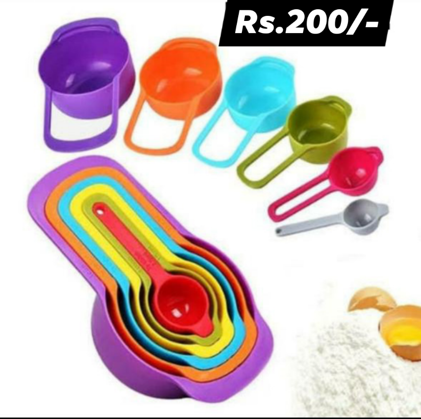 Expertly measure ingredients with our Colorful Measuring Cups & Spoon 6 Pcs Set. The set includes a variety of sizes and colors for easy identification and precise measurements. Crafted with durable materials, these tools will bring accuracy and convenience to your cooking and baking experience.