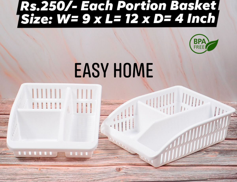 This multipurpose portion basket is the perfect solution for organizing and storing various items. With its three portion design, it provides easy access and separation of items. Measuring at 12x9x4 inches, it offers ample space while remaining compact. Stay organized with this versatile and efficient basket.