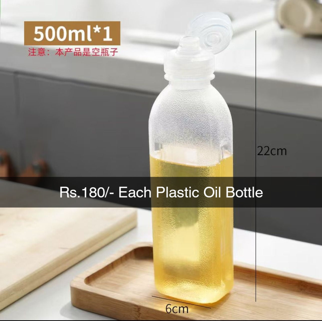 This plastic oil bottle is a versatile and practical addition to any kitchen. Made of durable plastic, it is designed to safely store and pour various types of cooking oil. Its lightweight and compact design make it easy to handle and store, making it a must-have for any cooking enthusiast.