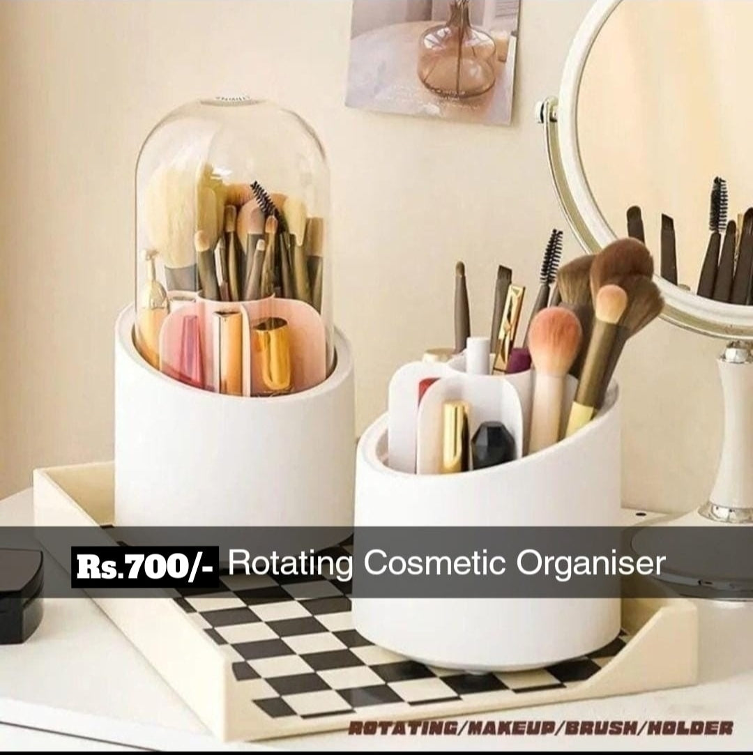 This Rotating Cosmetic Organizer features a dust-proof transparent cover and rotation capabilities. Keep your cosmetics organized and easily accessible while protecting them from dust. Save time and effort with this functional organizer.