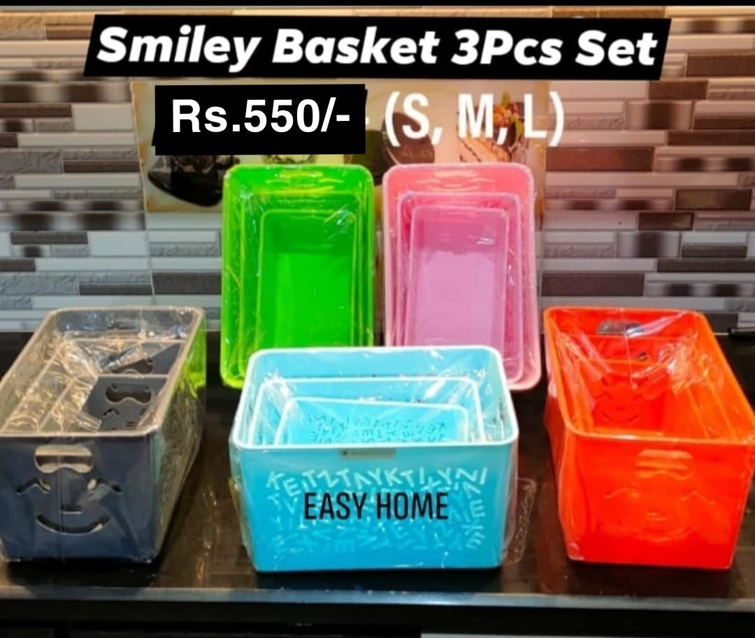 Efficiently organize your space with our Smiley Basket Set Without Lid. Made with durable materials, these baskets are perfect for storing and organizing various items. The open design allows for easy access and the smiley face design adds a touch of fun to any room. Keep your items neat and tidy with our Smiley Basket Set Without Lid.