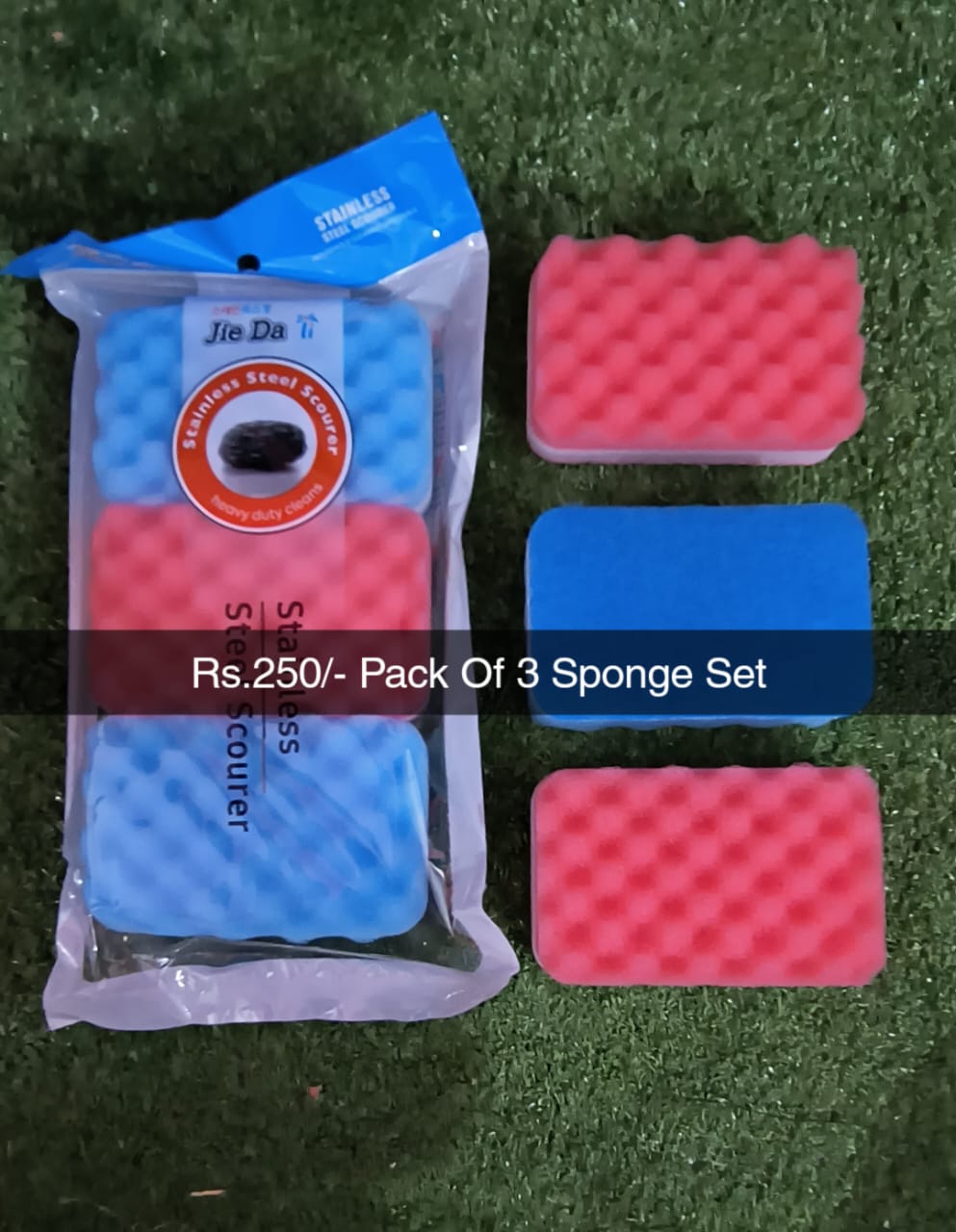 Get a sparkling clean home with our Sponge Set. This 1 pack set includes 3 versatile sponges that will easily tackle any mess. Made with high-quality materials, these sponges are durable and long-lasting. Say goodbye to stubborn stains and hello to a spotless utensils.