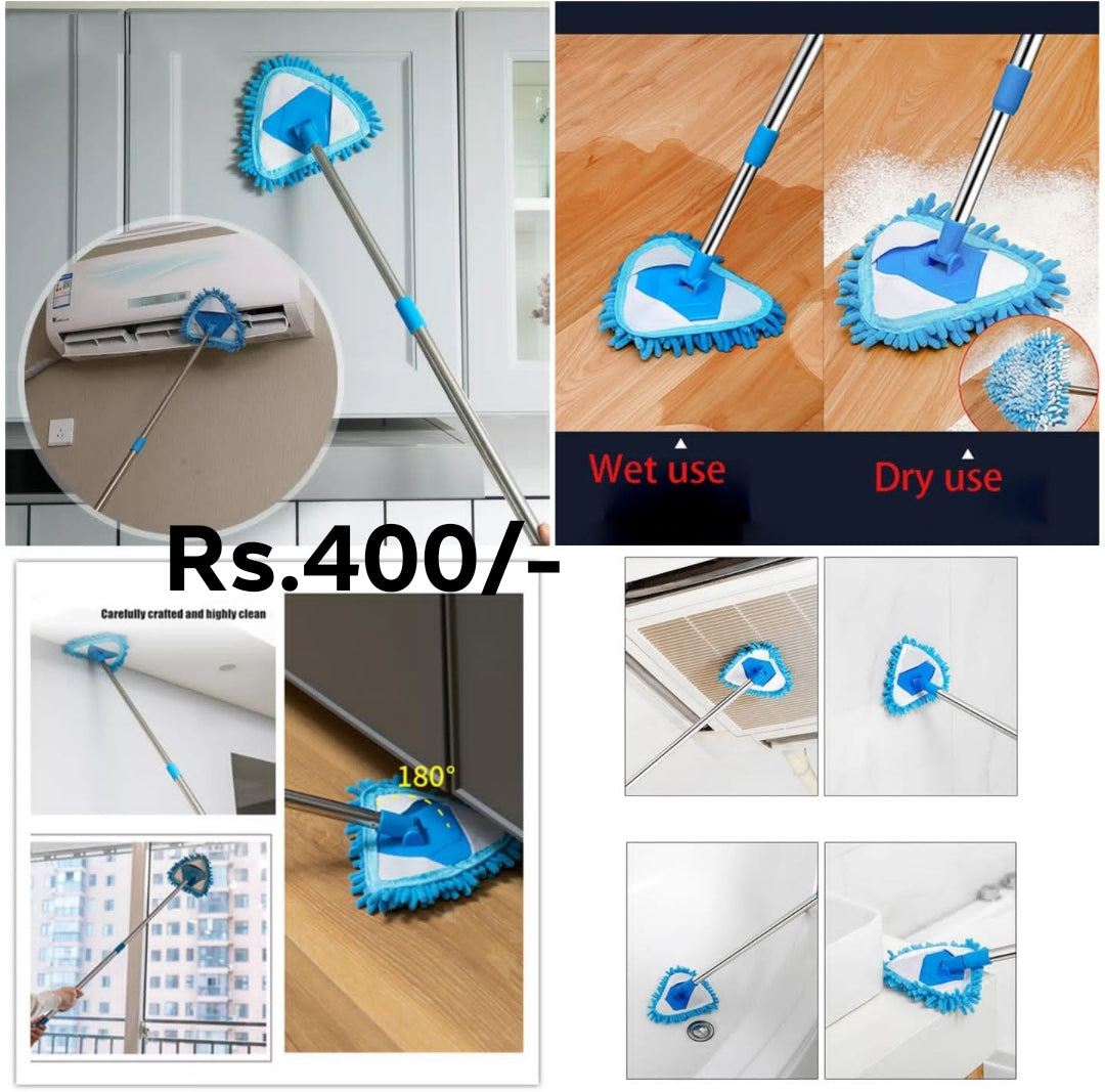 The Triangle Mop features a unique triangular design for efficient and thorough cleaning. With its 360-degree rotation, it can easily reach tight corners and hard-to-reach areas, making it a versatile and effective tool for any household. Its sturdy and absorbent material ensures a deep and streak-free clean every time.